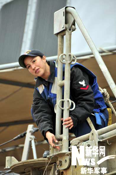 “菲茨杰拉德”號上的女兵 本網記者鄭文浩攝