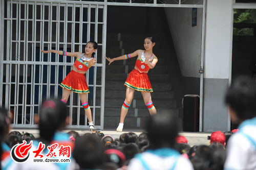 山東師范大學附屬小學的同學表演節(jié)目《爬坡上坎》