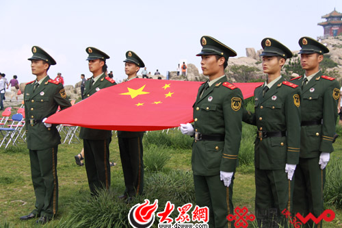 護(hù)旗手等待命令將護(hù)旗進(jìn)入儀式現(xiàn)場(chǎng)