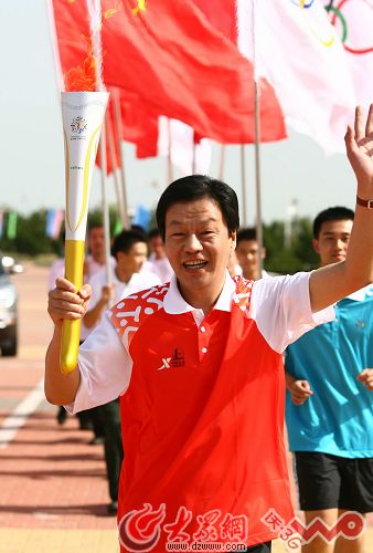 21日上午,“如意”火炬在山東省內(nèi)煙臺站的傳遞活動在煙臺市體育公園舉行。火炬?zhèn)鬟f路線總長約3公里,共有90名火炬手參加了火炬?zhèn)鬟f,萬余觀眾揮舞國旗和全運會會旗吶喊助威。奧運冠軍、煙臺籍體操運動員邢傲偉成為第一棒火炬手。 圖為大眾日報記者齊淮東傳遞火炬。