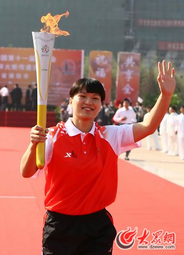 大眾網(wǎng)濰坊9月22日訊 今天,一個陽光明媚的金秋時節(jié),濰坊市迎來了全運火炬,這也是火炬?zhèn)鬟f山東省第四站。上午九點,啟動儀式在濰坊市人民廣場舉行,有90名火炬手參加了火炬?zhèn)鬟f,傳遞路線主要在勝利街進行。第一棒火炬手是奧運冠軍林偉寧,有近10萬市民在道路兩側夾道歡迎火炬手,為他們搖旗吶喊。