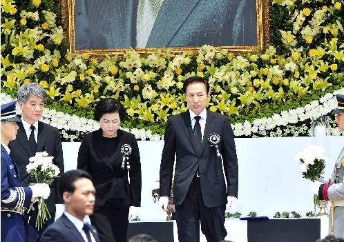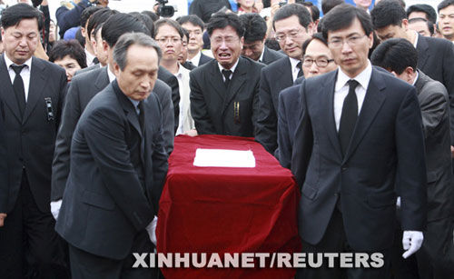 韓國(guó)總統(tǒng)李明博出席盧武鉉遺體告別...