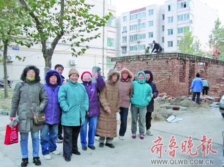 11月15日下午4點,天已昏暗,西苑小區五區3號樓和7號樓之間,十幾個工人還忙著添磚、砌墻,蓋起來的磚墻已有一米多高。七八個居民站在一旁,在零下四五攝氏度的天氣中凍得瑟瑟縮縮。 “我們怕有人破壞施工,從11日換熱站開始施工以來,每天早晨8點到晚上12點輪流值班看守!币晃徽緧彽木用裾f,自發值班的有五六十人,其中有好幾個七旬老人。
