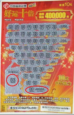 劉老漢介紹說,自己是一個農民,家住外地,女兒嫁到了泰安范鎮,這次趁農閑來泰安看閨女。來了之后,閨女和女婿好生招待。閨女還塞給他一些錢,讓他隨便在鎮上轉轉。劉老漢在鎮上轉了一圈,也走累了,正好看到前面有個福彩投注站,就拐進去準備歇歇腳,順便刮幾張彩票。看到投注站擺放的種類繁多的刮刮樂彩票,劉老漢隨便挑了幾張刮起來。開頭幾張都沒有獎,不過這并沒有打擊到劉老漢的好心情。他又拿起一張“好運十倍”,刮開“中獎號碼”覆蓋膜,“03”躍入眼簾,劉老接著開始刮“我的號碼”,一行、二行……隨著一行行數字的刮開顯示,劉老漢不禁嘆息說:“看來這回又沒戲呀!”沒想到刮完最后一個數字覆蓋膜后,赫然又出現了一個數字“03”,后面還跟著“