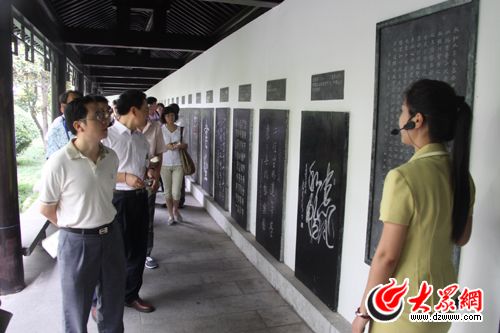大眾網臨沂8月24日訊(記者 李冉 馮煒程 燕雨)24日上午,網媒山東行采訪團來到臨沂市蘭山區,走進了一代“書圣”王羲之的故居。王羲之故居位于臨沂市蘭山區洗硯池街,為古典園林式建筑。公元303年,王羲之生于瑯琊臨沂(今臨沂市蘭山區)。少年時隨家族南遷會稽山陰(今浙江省紹興市),舍故宅為佛寺,佛寺歷經興廢。后易名普照寺,沿襲至今。