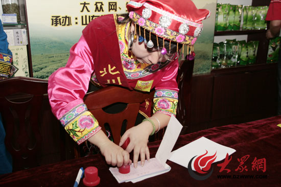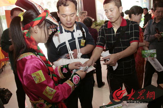 北川茶企員工正為購(gòu)茶者開據(jù)購(gòu)買收據(jù)