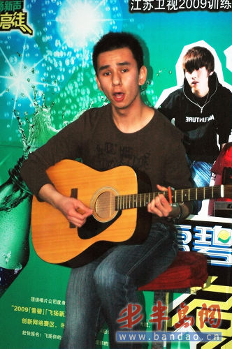 在本次參賽的168名選手中,第1108號(hào)選手王崠憑借嫻熟的吉他技巧、渾厚的男中音和富有異域特色的外表征服了在場(chǎng)評(píng)委。