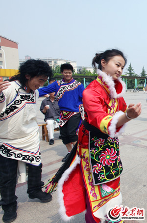 大眾網(wǎng)濟(jì)南5月30日訊(大眾網(wǎng)-生活日?qǐng)?bào)聯(lián)合報(bào)道組 記者 曹亮 劉國(guó)棟)伴著歡快的羌族音樂(lè),一群身著艷麗的羌族青年跳起了鍋莊舞,絡(luò)繹不絕的市民們?cè)诒贝ú琛案卸魃綎|之旅”的展臺(tái),一邊品茶,一邊欣賞著獨(dú)具特色的羌族舞蹈。今天上午10點(diǎn),北川茶“感恩山東之旅”活動(dòng)在南全福廣場(chǎng)正式啟動(dòng)。