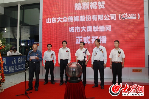 在城市大屏啟動儀式上,省委宣傳部副部長劉保聚致辭。他說,大眾網在經過大量市場調研和考察籌備后,率先推出了城市大屏聯播網這一極具發展空間的文化產業項目。未來幾年,希望大眾網能夠乘著文化產業改革的東風,扎扎實實地做好城市大屏聯播網的建設和經營工作,將其打造成為和諧山東網絡產業的又一道文化麗景,為建設經濟文化大省貢獻出一份自己的力量。