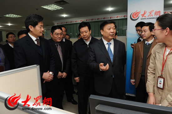 姜大明省長(zhǎng)關(guān)心齊魯手機(jī)報(bào)、眾眾微博的發(fā)展情況。大眾日?qǐng)?bào)記者 湯序民 攝