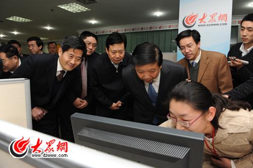 姜大明省長認真觀看眾眾微博關于“我為藍黃戰略獻良策”的“圍脖”留言。大眾日報記者 湯序民 攝