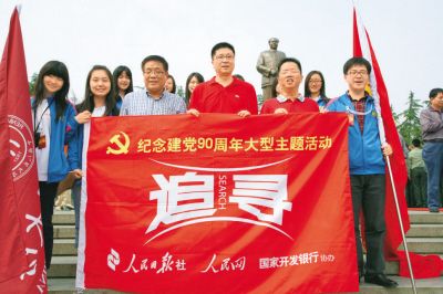 踏訪中國共產黨披荊斬棘、一路走來的足跡,重溫90年光輝歷程,感悟新一代歷史責任,是許多地方喜迎活動的重要內容。5月4日,來自全國各地的90名大學生相聚人民日報社,參加“追尋”活動出征儀式。他們將沿著中國共產黨誕生、發展、壯大的紅色足跡,尋訪若干在黨史上具有重大意義的紀念地。