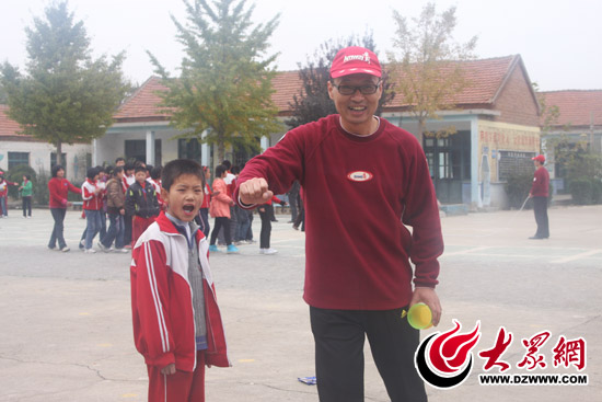 志愿者陶俊嶺在為孩子們加油助威