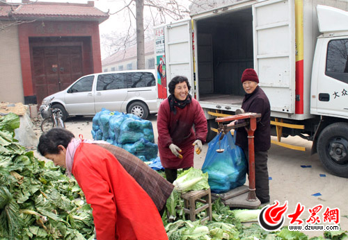 大眾網濟南11月26日訊(記者 尹海洋)又到周末,愛心繼續。“張建安家6100斤,王玉琢家5000斤,劉配華家3500斤……”今天上午,唐王鎮南殷村7戶菜農的37000斤大白菜終于“名菜有主”了。來自大眾報業(集團)發行有限公司的10輛汽車來到地頭,收購了37000斤愛心大白菜,這使得南殷村7戶菜農從中受益。
