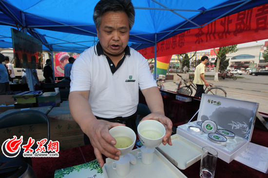 在活動(dòng)現(xiàn)場(chǎng)一角,濟(jì)南市茶業(yè)批發(fā)市場(chǎng)從事14年之久的品茶師薛德全表演了一番精彩的茶藝。“把盤——沖泡——看、聞、品、捏”,一系列工序下來之后,讓市民們見識(shí)到了怎樣鑒別好茶。“北川茶不錯(cuò),葉質(zhì)均勻,湯色黃綠、清澈鮮亮,茶香濃厚,耐沖泡。”薛德全歷數(shù)北川茶的優(yōu)點(diǎn),對(duì)茶質(zhì)贊不絕口。