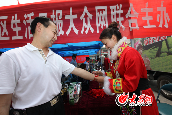 “納魯西魯!納魯西魯……”(漢語(yǔ):吉祥如意)一句句貼心的羌族祝福語(yǔ)送給了愛心市民 ,一條條紅色的吉祥帶為他們送去誠(chéng)摯的祝福。在北川茶“感恩山東之旅”第二站的現(xiàn)場(chǎng),絡(luò)繹不絕的市民們從四面八方趕來,紛紛解囊購(gòu)買北川茶,為災(zāi)區(qū)企業(yè)恢復(fù)重建奉獻(xiàn)一點(diǎn)愛心。