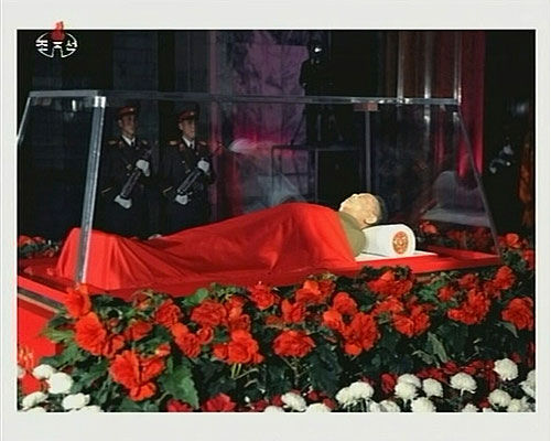 遺體告別儀式結束后,靈柩將回到紀念宮與其父親金日成一起安置,并永久保存。