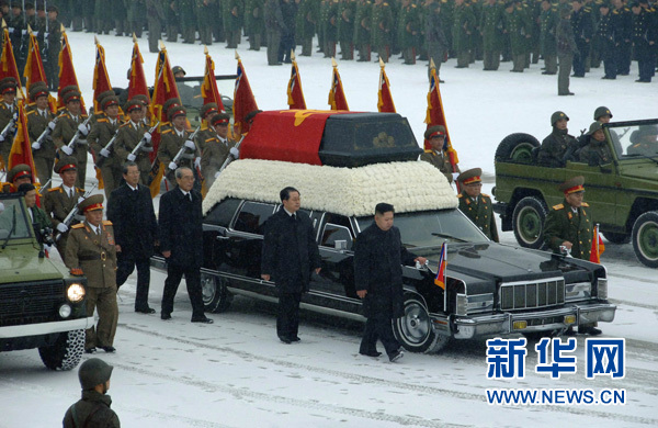 朝鮮28日在平壤舉行金正日遺體告別儀式。金正恩等朝鮮黨政軍領(lǐng)導(dǎo)人和各界人士出席告別儀式。朝鮮人民軍官兵和各界群眾在平壤市內(nèi)40公里長的街道兩旁冒雪送別金正日。