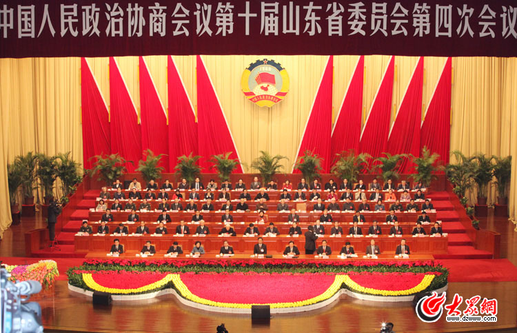 大眾網濟南2月16日訊(記者 曹亮 劉國棟 盛堃 隋喬)今天上午10時,山東省政協十屆四次會議閉幕大會在山東會堂舉行。圖為閉幕大會會場。