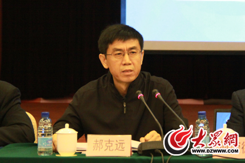 大眾報業集團黨委常委、副總編輯郝克遠在座談會上發言。