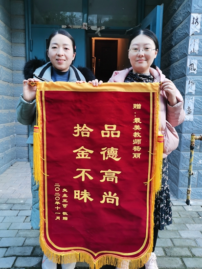 楊麗自幼受到儒家優秀傳統文化的熏陶,言出必行,以誠待人,有一副熱心腸,獲得街坊鄰里的稱贊;從教三年來,愛崗敬業,師德高尚,以誠信教學,贏得師生們的一致好評。2020年11月21日晚,楊麗撿到一個背包,背包中有大量的現金、銀行卡、手機,她寒風中等候三個小時后,與失主取得聯系,及時將錢款物品完整的交到失主手里。失主當面拿現金表示感謝,被其婉言拒絕。