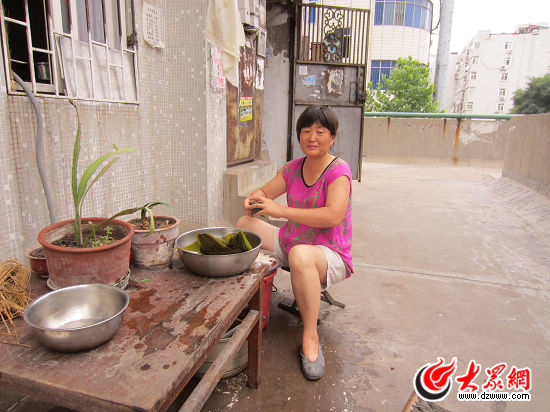 趙麗華心里清楚,因?yàn)槌D暝谶@里賣粽子,鄰里街坊都聽說過她家的困難,所以很多人買粽子都是為了幫幫她。她自己知道感恩,所以刷粽葉、包粽子從不糊弄。