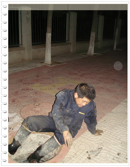 2012年四月的一天晚上,維修隊接到居民報修電話。正在值班的宋修江立即趕往現場。進入污水井內,發現在管線下側貼近污水水面處有2個黃豆大小的眼,氣壓非常大,可以判斷管線為天然氣管線。他知道,排污系統是全部串通的,污水井內天然氣泄漏時間一長,整個排污管道很快會全部充滿天然氣,一旦遇到明火,臨盤區域的整條排污系統將會被掀翻,后果不堪設想。宋修江和趕來的同事們開始了緊張的搶修。由于漏氣部位緊靠污水井壁,無法打卡子,必須在井壁挖洞才能安裝卡子。污水井的井壁非常堅固,又不能使用電動工具,因為一旦打出星點火花,就會帶來危險。他和同事們蜷曲著身子,輪流在狹窄的排污井內一點點地將井壁磚塊敲碎,用手指慢慢的摳……直到晚11點30分,他們終于在堅實的井壁上打出了一個卡子洞,迅速在卡子內墊上膠皮,再擰緊螺絲,堵漏成功。這時,老宋和同事們的手指甲都磨壞了,血跡斑斑……