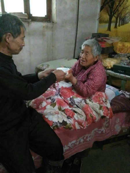 與丁德強共事30多年的劉鳳軍告訴記者,丁老師為了照顧妻子和母親十分辛苦,有時為了準時上班,早上連飯都顧不上吃,只能到學校用開水泡干糧。由于妻子吃飯、穿衣,甚至走路都需要人照顧,他上課的時候,同事們就自覺在辦公室照看她。丁老師的細心和耐心也令大家動容,“她現在完全離不開人,老丁幾乎每天喂藥的時候,都像哄小孩一樣,讓我們看了既心疼又佩服。”
