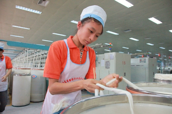 梅花香自苦寒來。能夠取得如此出色的成績,得益于劉慶慶的勤奮和努力。“早晨四點多就起來背理論,平常不管干啥腦子里全是理論,就是控制不住,騎著電動車,放到車棚里,從車棚向廠里走的這一段路,腦子里全是工作法。”劉慶慶說起她開始學習技術理論時的經歷。2004年,她進入魏橋紡織股份有限公司第三棉紡廠前紡車間,成為了一名粗紗值車工,在這個崗位上一干就是13年。剛進廠的2個月里,為了練好操作技術,她每天自覺加班3個多小時,從紗線接頭方法到清潔程序,再到落紗要領,反復研究、練習著每一個操作細節,衣服不知被汗水浸透過多少次,胳膊常常累得抬不起來,她卻樂此不疲!皠c慶對自己要求標準很高,又最勤奮!睅膸煾祬羌t霞評價到。短短2個月時間,劉慶慶就率先達到了頂崗水平,提前出徒。隨后幾年間,在車間綜合評比中,劉慶慶總是看臺最多、產量最高、質量最好的車工。
