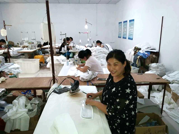 也許是老天眷顧始終努力堅持的人,機緣巧合,通過朋友介紹認識了資金和業務實力雄厚的博惠紡織有限公司的老板,經過雙方考察后一拍即合,立即達成了長期合作的協議,但是隨著合作的升級以及加工產品的不斷高端化,廠房和設備老化,成了刻不容緩的事情,在困難面前袁偉沒有任何猶豫,立即多方籌資20萬元對廠房進行重新裝修,設備全部更換為最新款的電腦機器。