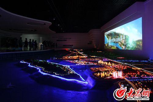 17日上午,采訪團一行來到牟平規劃展示中心。據工作人員介紹,該展示中心集藍色經濟發展規劃、演示、體驗、互動于一體,采用多媒體沙盤、圖板、顯示屏、模型和3D影院等高科技手段,集中展示煙臺東部濱海生態城暨牟平藍色經濟區規劃成果,立體描繪藍色牟平未來宏圖。