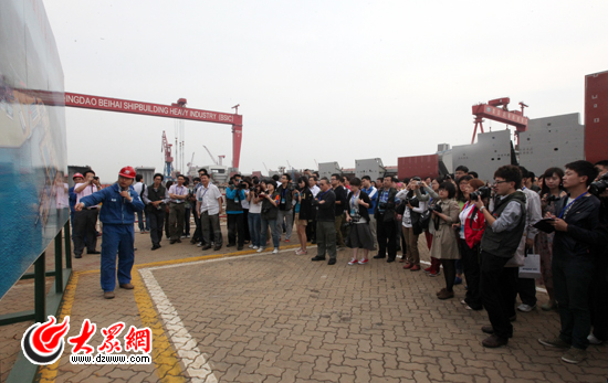今天上午,科學發展新山東——“魯花杯”第八屆中國網絡媒體山東行采訪團來到青島北海船舶重工有限責任公司。(盛堃 攝影)