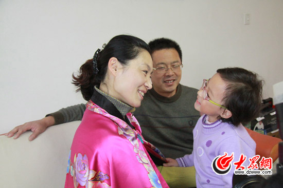 進采集室前呂明玉一家人在一起,5歲的孩子茸茸聽到媽媽要近手術室很不高興
