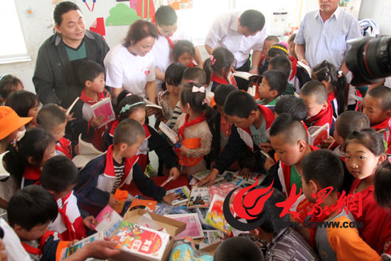 愛心企業(yè)將新圖書送到孩子們手中。