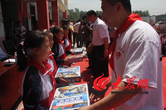 為讓農(nóng)村的孩子們也能過一個快樂難忘的兒童節(jié),今天上午,山東省人大的5位“第一書記”與愛心企業(yè)一起,來到東平縣戴廟鎮(zhèn)中心小學(xué),將300多套新校服、1000余雙運(yùn)動鞋、100套新桌椅和7000多冊新圖書送到孩子們手中。