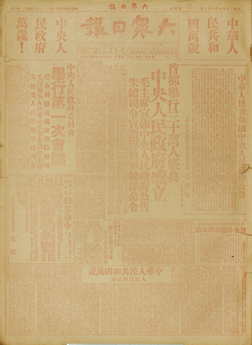 1949年10月2日一版,新中國成立版面