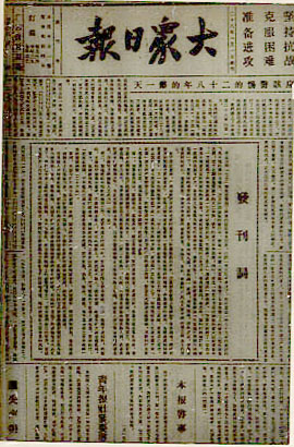 創(chuàng)刊號(hào)四個(gè)版共發(fā)表文章、通訊、消息、廣告、啟事七十四篇。一版頭條文章是《應(yīng)該警惕的二十八年的第一天》,一版正中間是發(fā)刊詞,并附有兩則啟事:一則說明由于印刷機(jī)還沒有完全整理及補(bǔ)充起來,所以暫出三日刊,爭取不久成為二日刊以至日刊。二則說明青年報(bào)社同仁全體參加大眾日?qǐng)?bào)社工作。