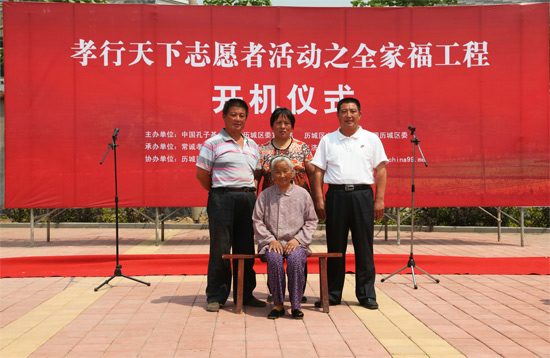 “孝行天下—全家福工程”即志愿者深入社區或農村,為老人、家庭免費拍攝全家福照片。志愿者團隊將照片洗印后,由社區或農村委員會負責組織統計人員并發放。