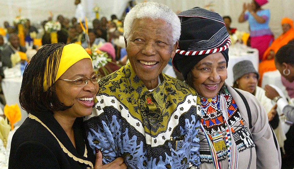 與前妻溫妮離婚后不久,1996年,在法國(guó)巴黎的一次正式宴會(huì)上,曼德拉一語(yǔ)驚人:“我再次墜入了愛河,連我自己都沒想到!痹诒娙梭@愕的目光中,曼德拉公布了與莫桑比克前總統(tǒng)馬歇爾遺孀格拉薩的戀情。1998年7月18日,曼德拉80歲生日那天,53歲的格拉薩成為曼德拉的新娘。圖為2004年7月18日,曼德拉與妻子格拉薩(左)和前妻溫妮(右)在86歲生日聚會(huì)上。