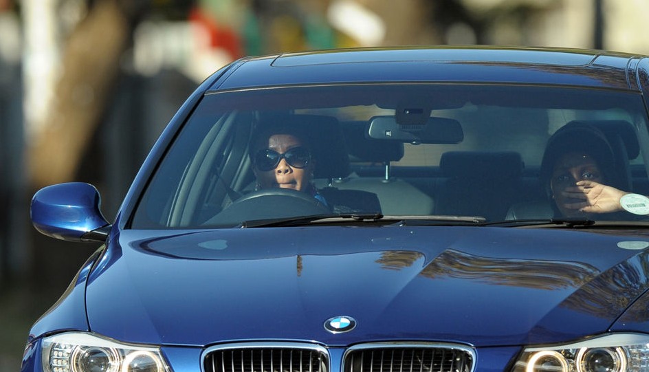 2013年6月8日,曼德拉因肺部感染復(fù)發(fā)被送往比勒陀利亞醫(yī)院治療。這是現(xiàn)年94歲的曼德拉自去年12月以來第四次住院接受治療。6月10日,南非總統(tǒng)府稱,因肺部感染復(fù)發(fā)而入院治療的南非前總統(tǒng)曼德拉目前病情“嚴(yán)重但穩(wěn)定”,他的身體狀況與上周末入院時“一樣”。圖為2013年6月13日,曼德拉的孫女Tukwini(左)在探病后駕車離開比勒陀利亞醫(yī)院。