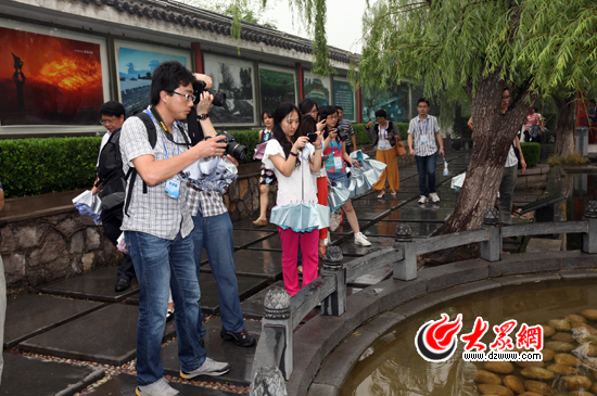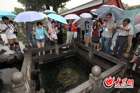 今天下午,“聚焦美麗山東——第九屆中國網(wǎng)絡(luò)媒體山東行”采訪團(tuán)冒雨來到一代詞人李清照的故居章丘百脈泉。大眾網(wǎng)記者 楊春衛(wèi) 攝