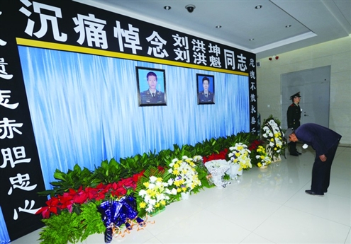 “他是我的中隊(duì)長,從我是新兵的時候就帶著我……”昨天下午,從青島坐動車趕到北京的賀騰飛哭紅了眼睛,默默地對著劉洪坤的遺像鞠躬致意。