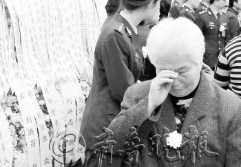 17日,前來(lái)為兩位山東英雄送行的市民悲傷落淚。 本報(bào)特派記者 邱志強(qiáng) 攝