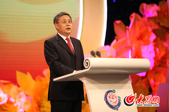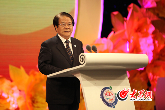 中共山東省委副書記、省長、十藝節(jié)組委會(huì)主任郭樹清致歡迎辭。大眾網(wǎng)記者 楊春衛(wèi) 攝