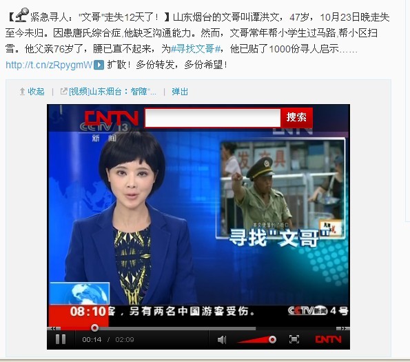 央視官方微博轉發和新聞報道后,姐姐譚春玲接到全國多地熱心民眾的電話,表示曾在當地見過貌似“文哥”的人。