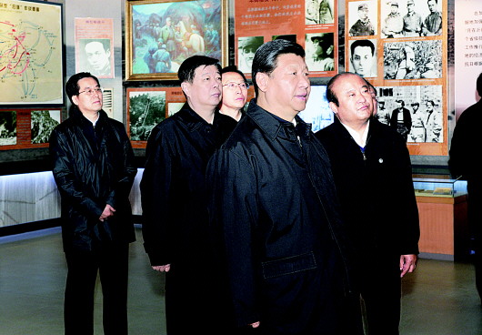 ■新聞背景:2013年11月25日上午,習(xí)近平總書記來到華東革命烈士陵園,向革命烈士紀(jì)念塔敬獻(xiàn)花籃,參觀沂蒙精神展,聽取沂蒙地區(qū)革命戰(zhàn)爭歷史介紹,并會見了當(dāng)?shù)叵冗M(jìn)模范和當(dāng)年支前模范后代代表。25日下午,習(xí)近平來到臨沭縣曹莊鎮(zhèn)朱村,觀看這個抗戰(zhàn)初期就建立黨組織的支前模范村村史展,了解革命老區(qū)群眾生產(chǎn)生活。習(xí)近平強調(diào),生活一天比一天好,但我們不能忘記歷史。他叮囑當(dāng)?shù)馗刹?讓老區(qū)人民過上好日子,是我們黨的莊嚴(yán)承諾,各級黨委和政府要繼續(xù)加大對革命老區(qū)的支持,形成促進(jìn)革命老區(qū)加快發(fā)展的強大合力。