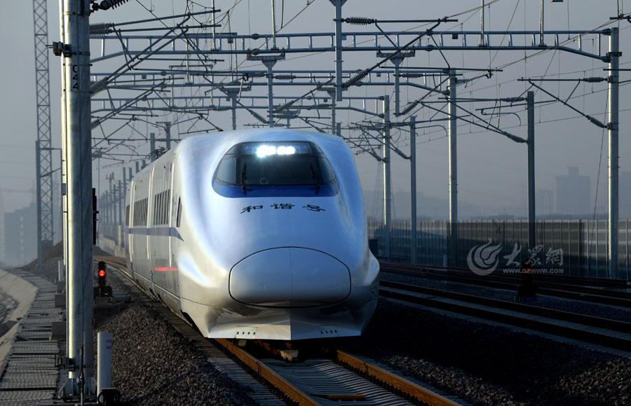 青榮城鐵聯(lián)調聯(lián)試階段,動車飛馳而過