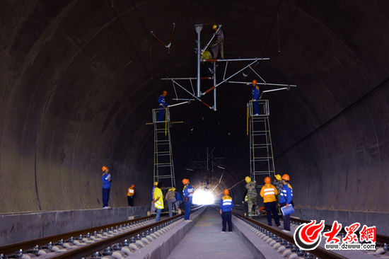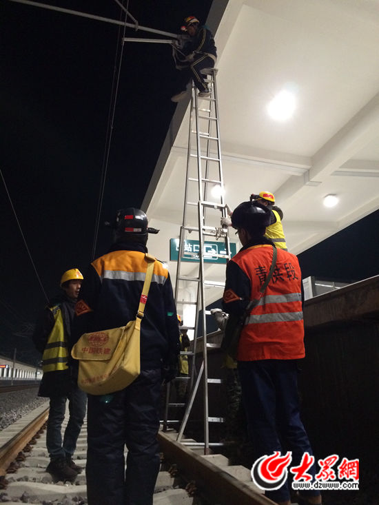 隨著青榮城際鐵路正式通車日益臨近,越來越多的目光聚焦到這條全長299公里的線路上。拔地而起的高鐵新站、呼嘯而過的試驗列車,這一切承載著膠東的“高鐵夢”,令人心潮澎湃。然而人們恐怕很少記起,白天鐵路上往來列車不斷,要保證線路的安全通暢,絕大部分檢修和維護工作只能在夜間進行。12月18日晚,大眾網記者走進青島供電段萊西北接觸網工區,走近長期在青榮線上高空作業的接觸網工人,從深夜到次日凌晨,親身體驗了這些“蜘蛛人”們的8小時夜生活。