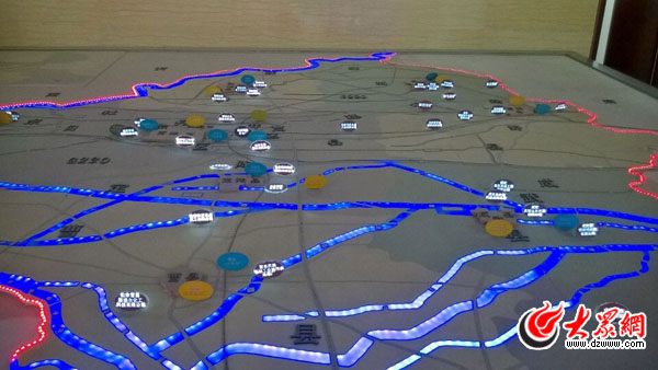 菏澤在全市范圍內(nèi)對(duì)影響大氣環(huán)境質(zhì)量的所有污染源開展排查摸底。在菏澤市環(huán)保局門口,重點(diǎn)污染源被標(biāo)注在電子沙盤上,一目了然。記者 馬俊驥 攝。