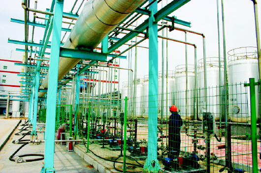 <通過招商引資和扶持本地企業(yè)發(fā)展,臨邑縣投產和在建的以齊魯制藥、信立泰制藥為龍頭的醫(yī)藥企業(yè)及生產基地達20多家,形成一個集產品研發(fā)、藥物鑒定、生產銷售于一體,年銷售收入過百億元的現(xiàn)代生物醫(yī)藥產業(yè)體系。圖為齊魯制藥臨邑生產基地裝置一角。